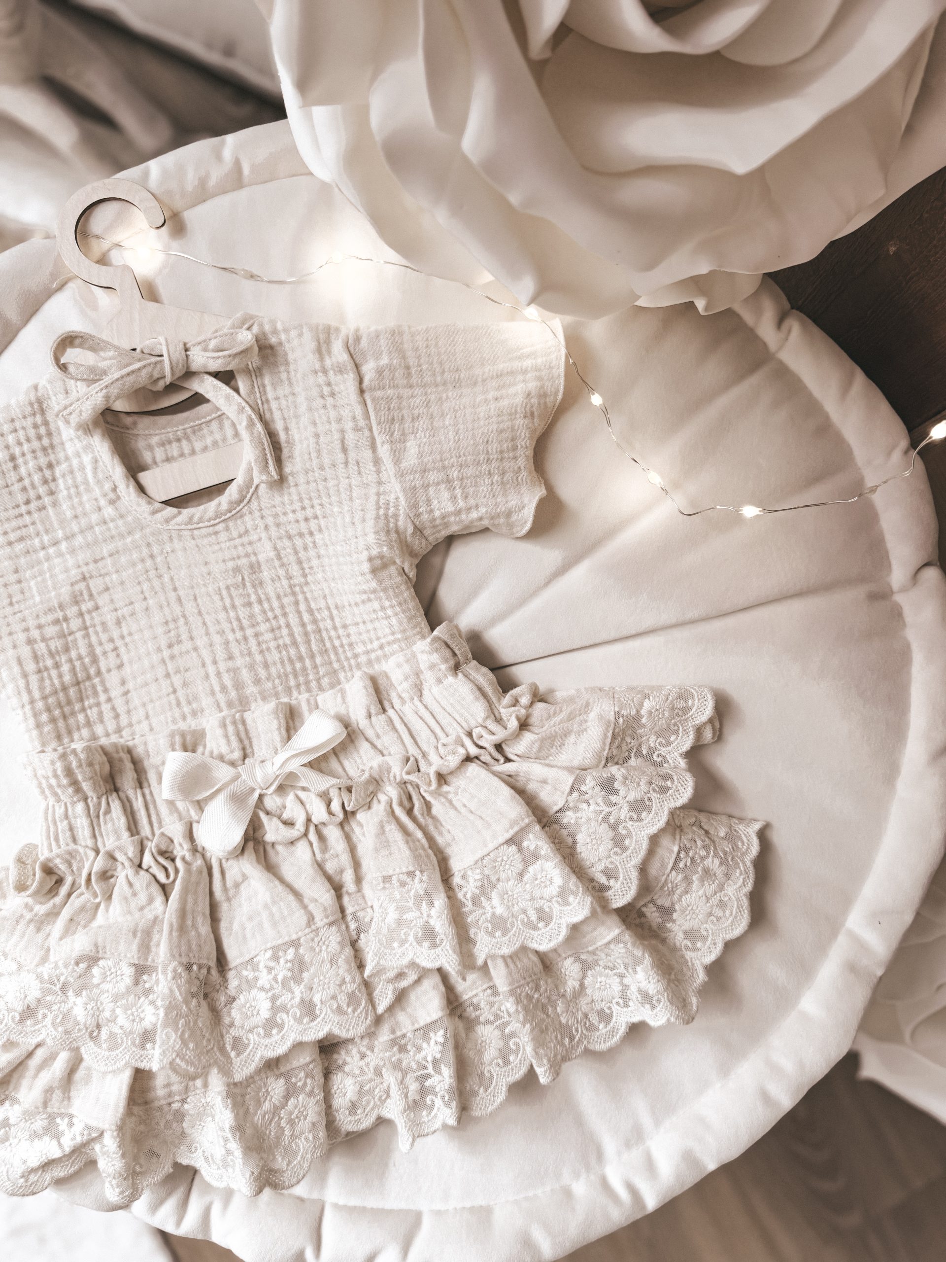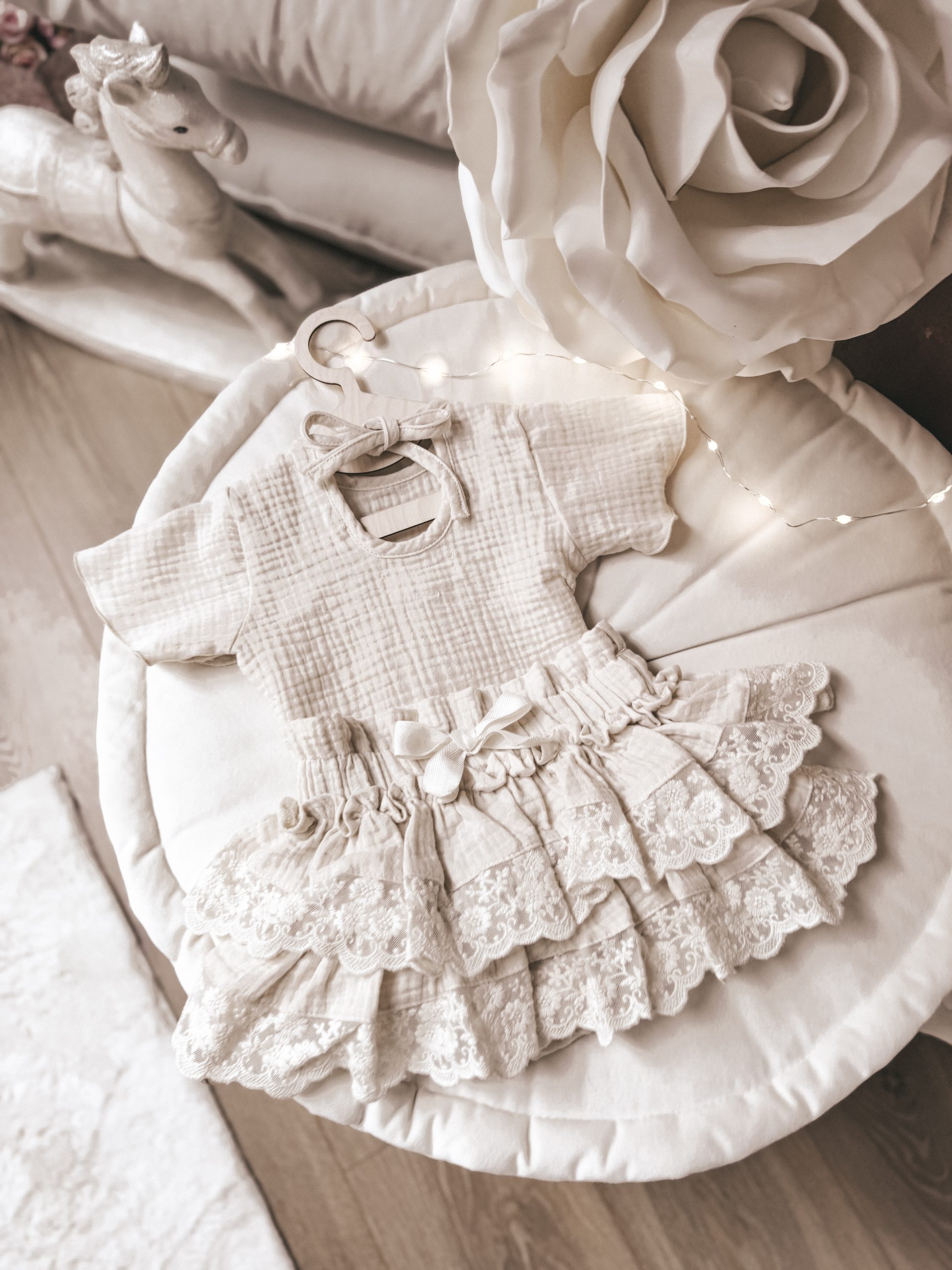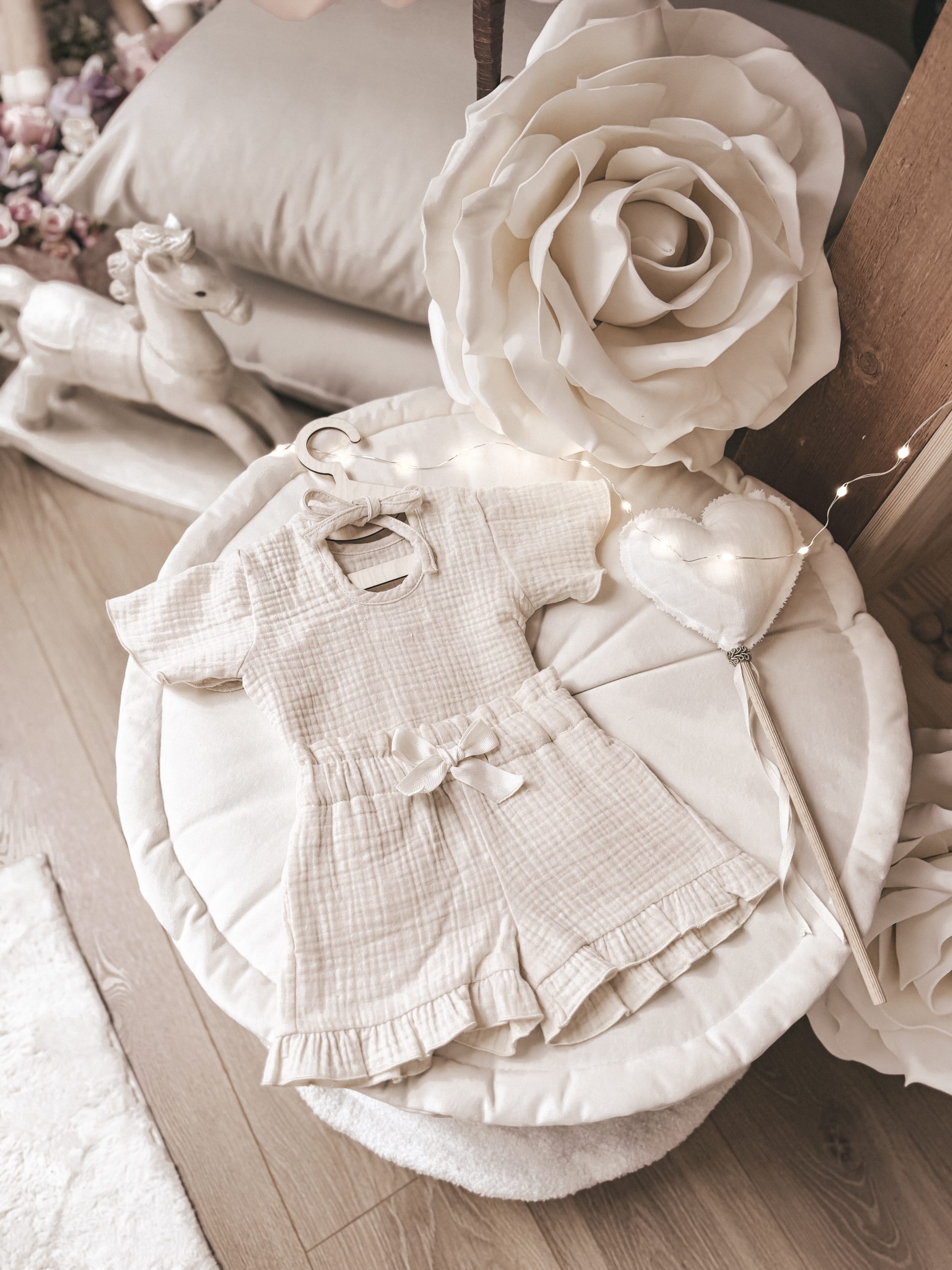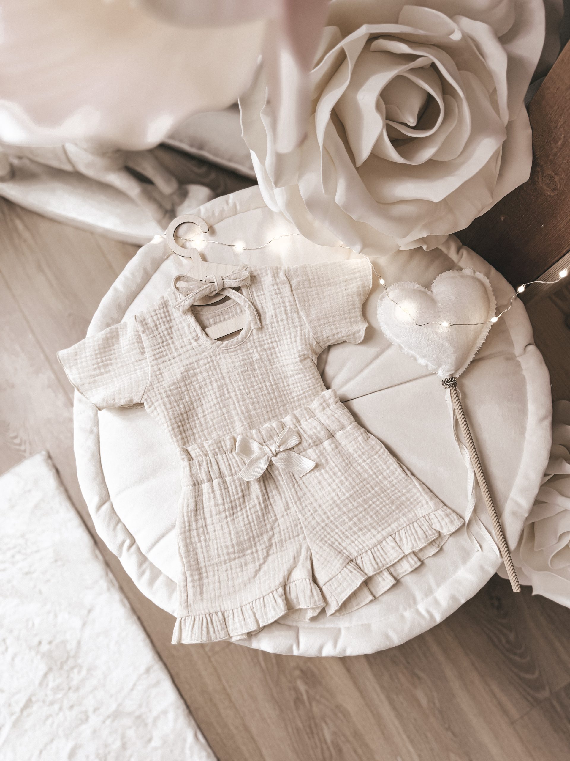 Limitowany drop – komplecik letni wykonany z przepięknej tkaniny muślin bawełniany w cudownym kolorze kremowym cream 💗
