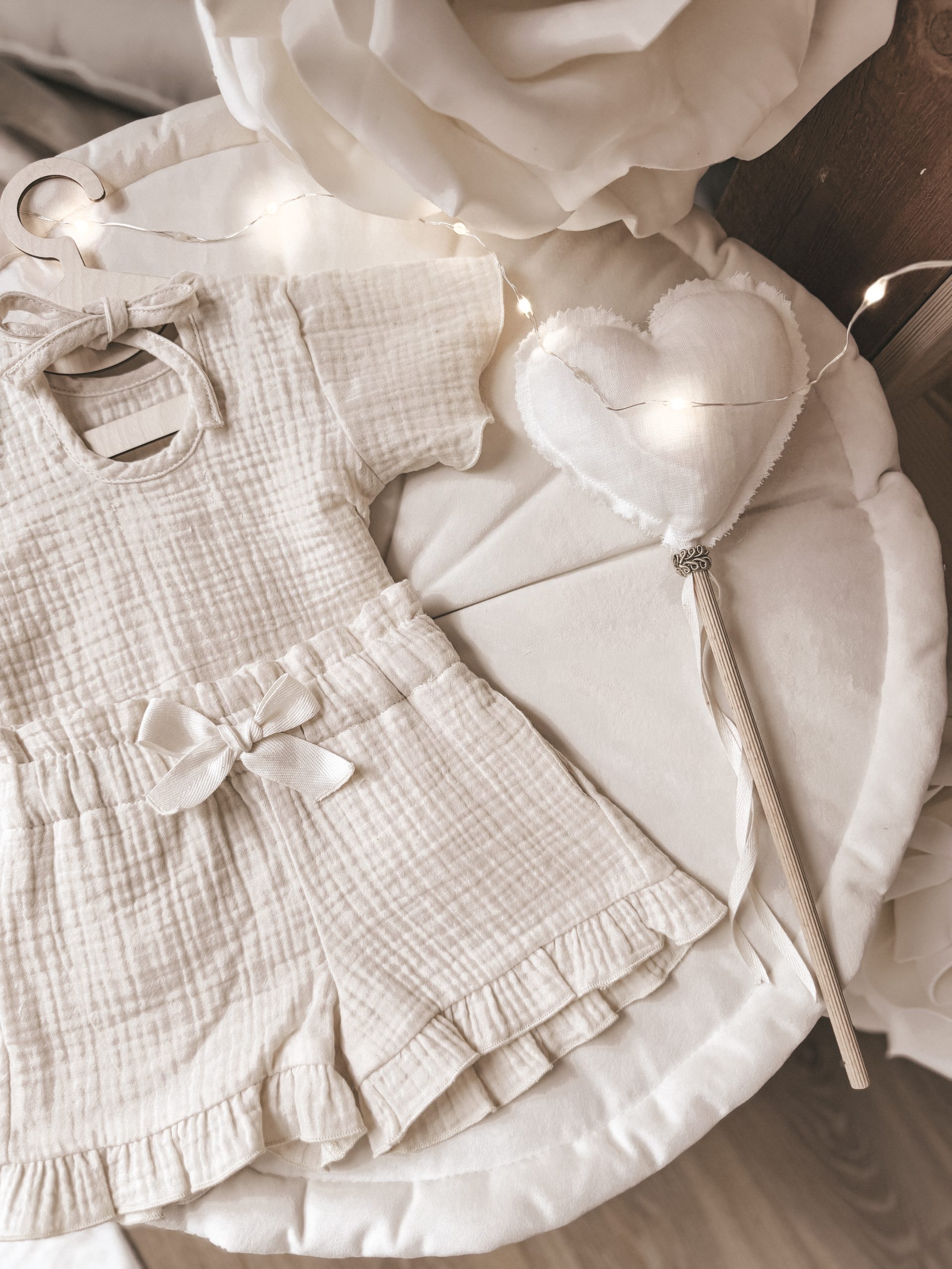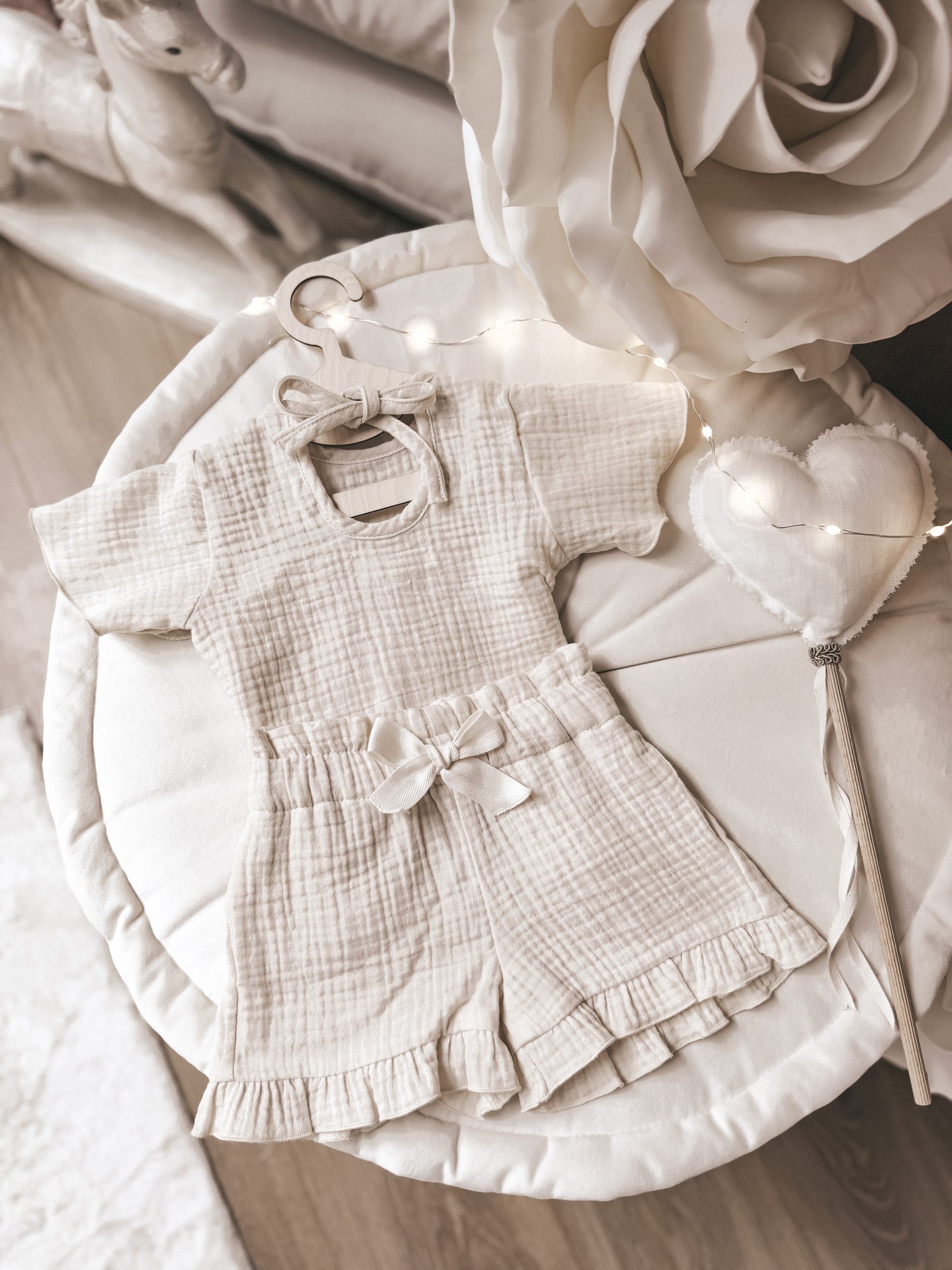 Krótkie spodnie i bluzka z materiałów bawełnianych przebadanych pod kątem maluszków, bezpiecznych, miękkich i oddychających. Muślin bawełniany to idealny materiał dla dzieci – jest wyjątkowo miękki, lekki i delikatny dla wrażliwej skóry. Dzięki swojej przewiewności pozwala skórze oddychać, co sprawia, że świetnie sprawdza się szczególnie latem. Naturalna bawełna jest bezpieczna, a przy tym trwała i z każdym praniem staje się jeszcze przyjemniejsza w dotyku. Dbamy o Wasze pociechy! ❤️